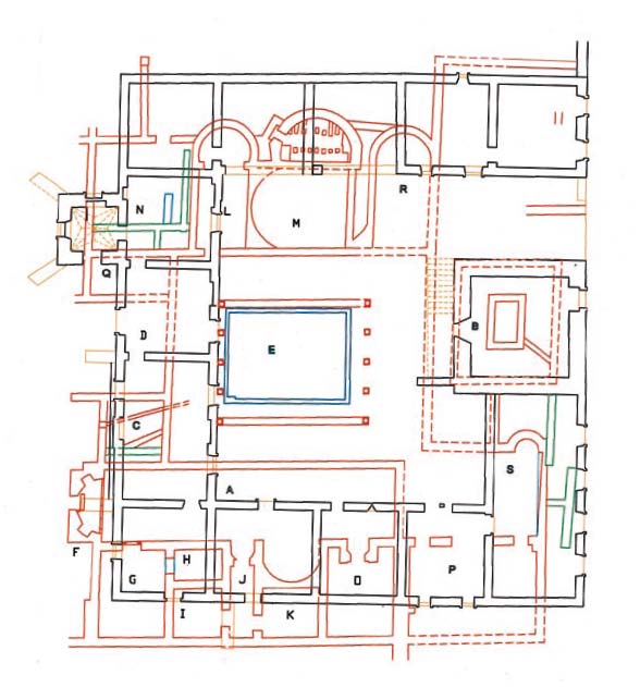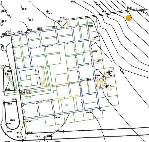 Paço dos Vasconcelos, villa tardo-romana, planta de localização dos diversos espaços. |
